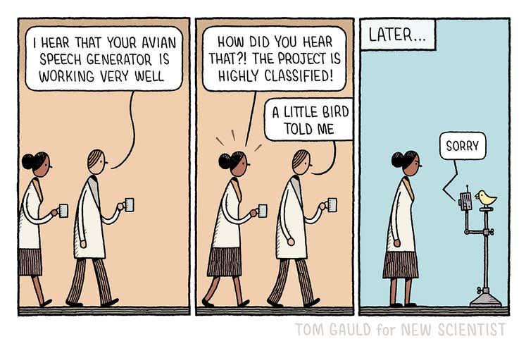 Tom Gauld's highly classified avian speech generator project gets out Tom Gauld's weekly cartoon Regulars