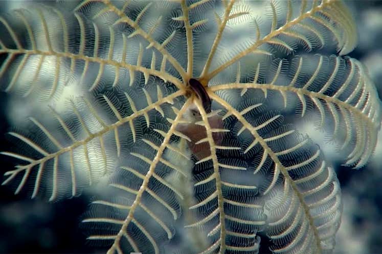 LifeSea stars filmed hunting squid and squabbling over eating it Snails feast on sea lily faeces in the latest videos from submersibles diving in never-before-explored parts of the ocean News