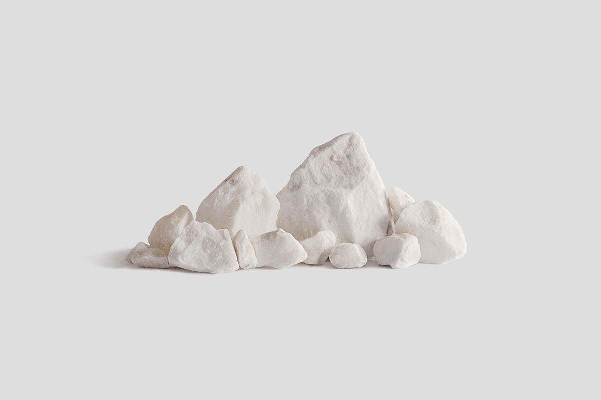 The brutal excavation methods mean that, of the stone that is removed, only a quarter is used as decorative marble. The rest is ground into calcium carbonate (below), an ingredient in products such as medicines, cosmetics, food, paint, plastic and toothpaste (top).