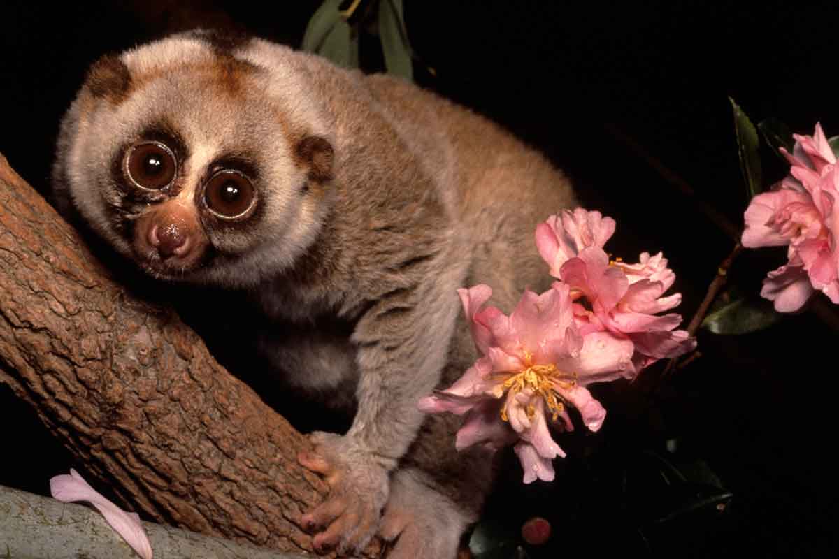 The slow loris spends much of its time guzzling bertam palm nectar, which has documented alcohol concentrations in the wild of up to 3.8 per cent.