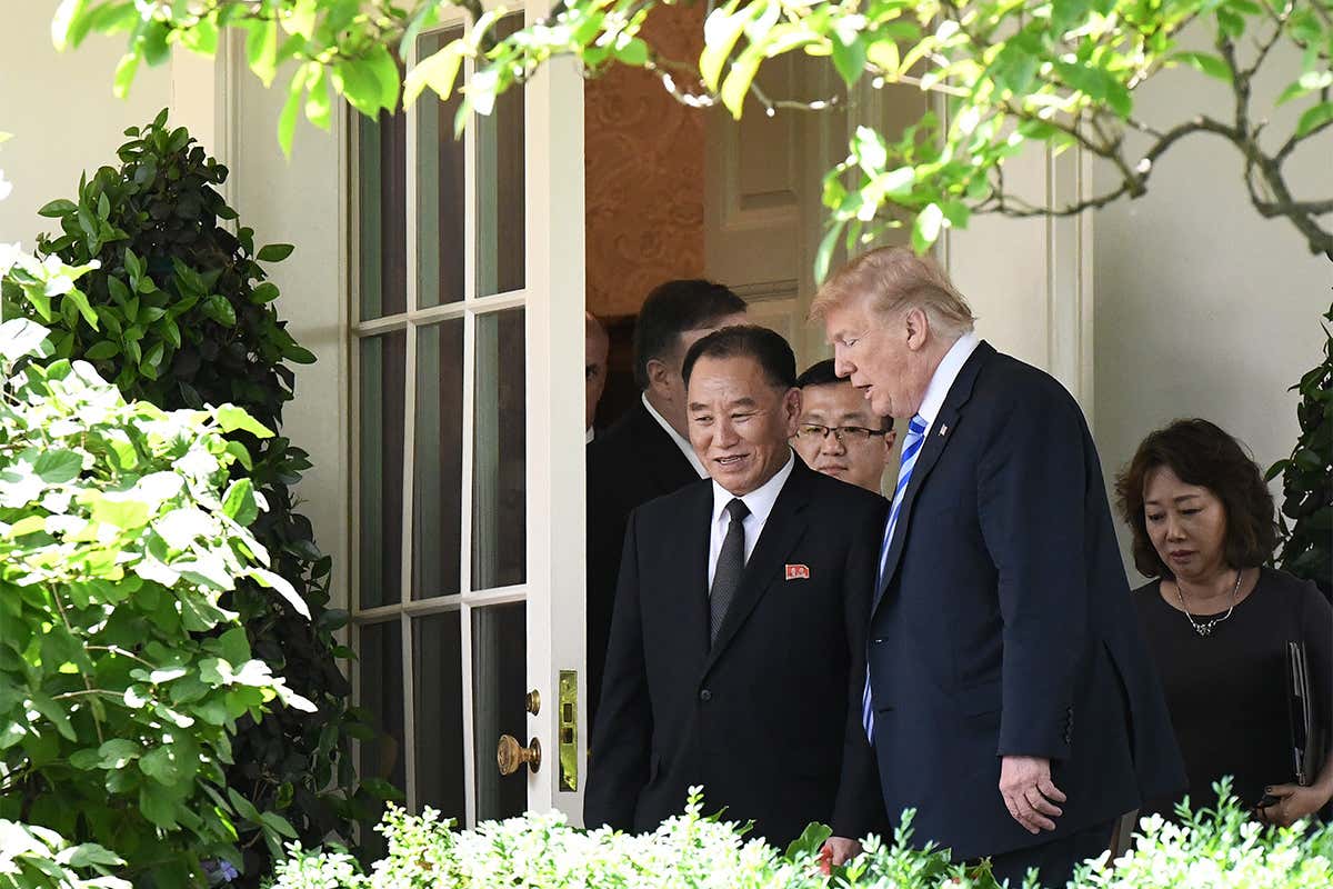 Donald Trump talking to North Korean politician Kim Yong-chol Olivier Douliery/PA