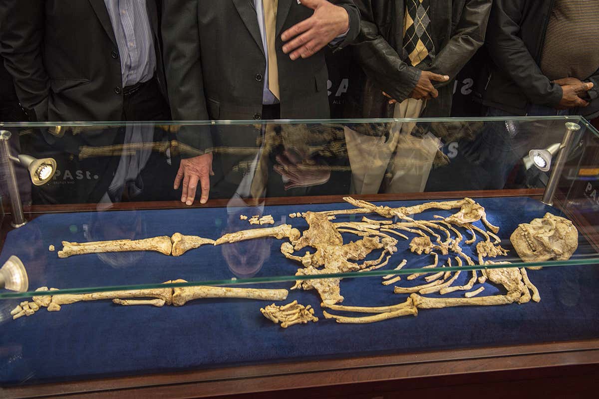“I’ve spent 20 years getting this skeleton, finding it in the rock in the deep darkness of the cave, locating every bone, and then cleaning it sufficiently so we could identify them in the cave, undercutting them, bringing them out in blocks, cleaning them, reconstructing them,” says Clarke.