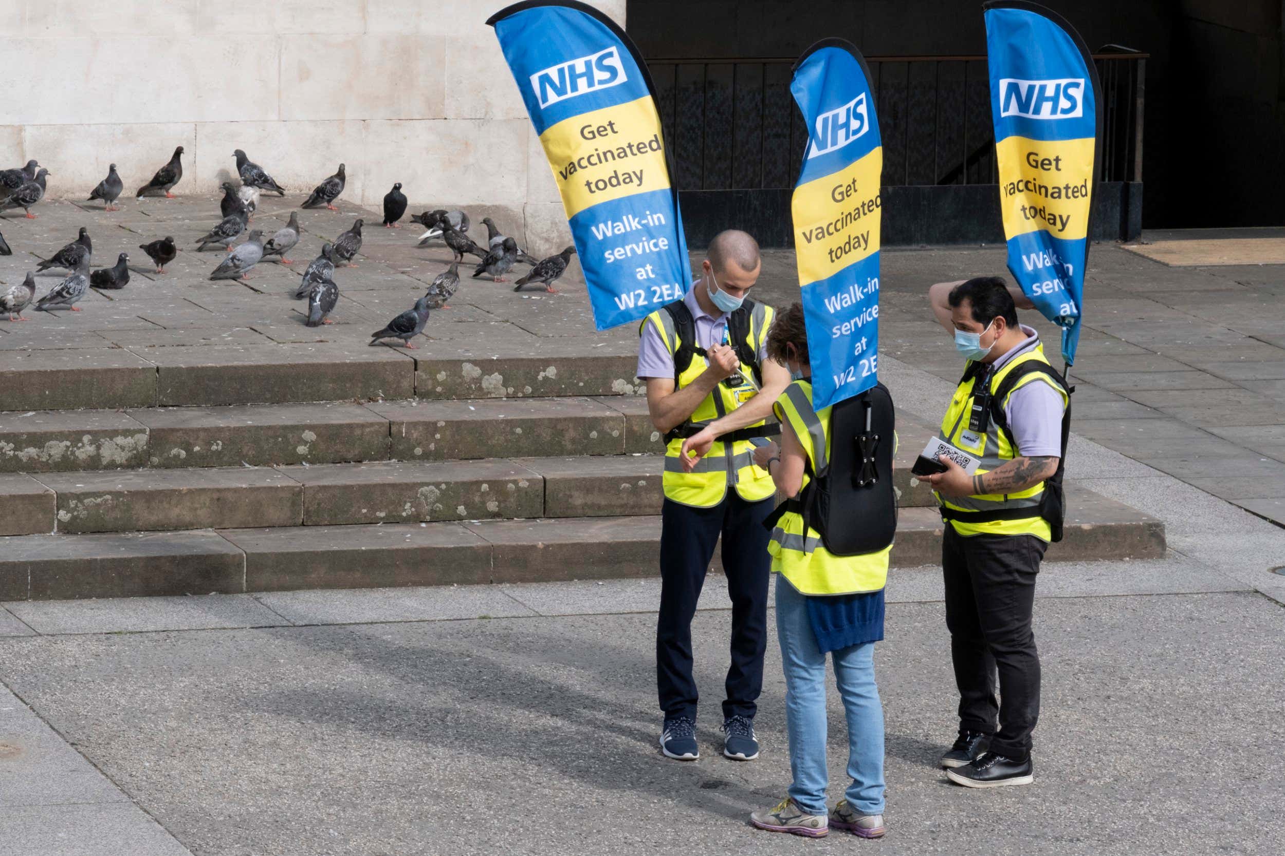 People hand out information outside Marble Arch tube station in London Richard Baker/Getty Images