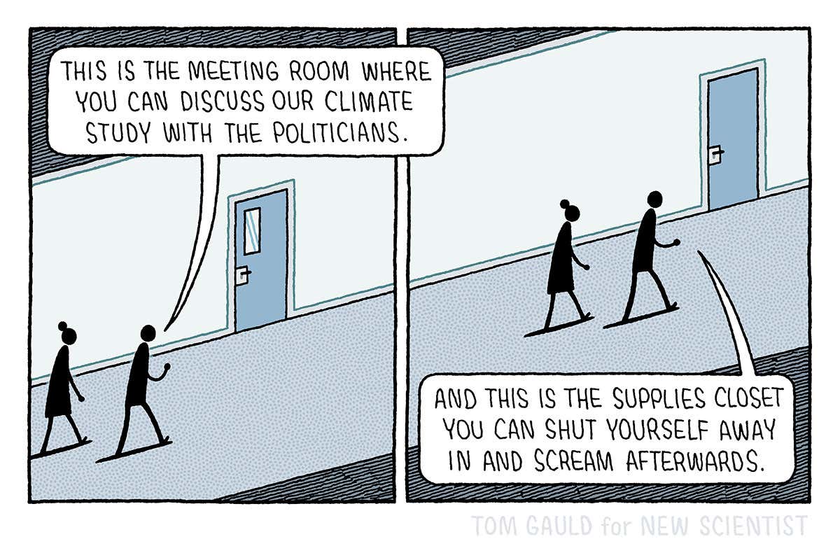 Tom Gauld offers climate scientists a much-needed place to vent 12 January 2022 Facebook / Meta Twitter / X icon Linkedin Reddit Email Other cartoons by Tom Gauld can be found here. Topics:Cartoon Advertisement Sign up to our weekly newsletter Receive a weekly dose of discovery in your inbox. We'll also keep you up to date with New Scientist events and special offers. Sign up