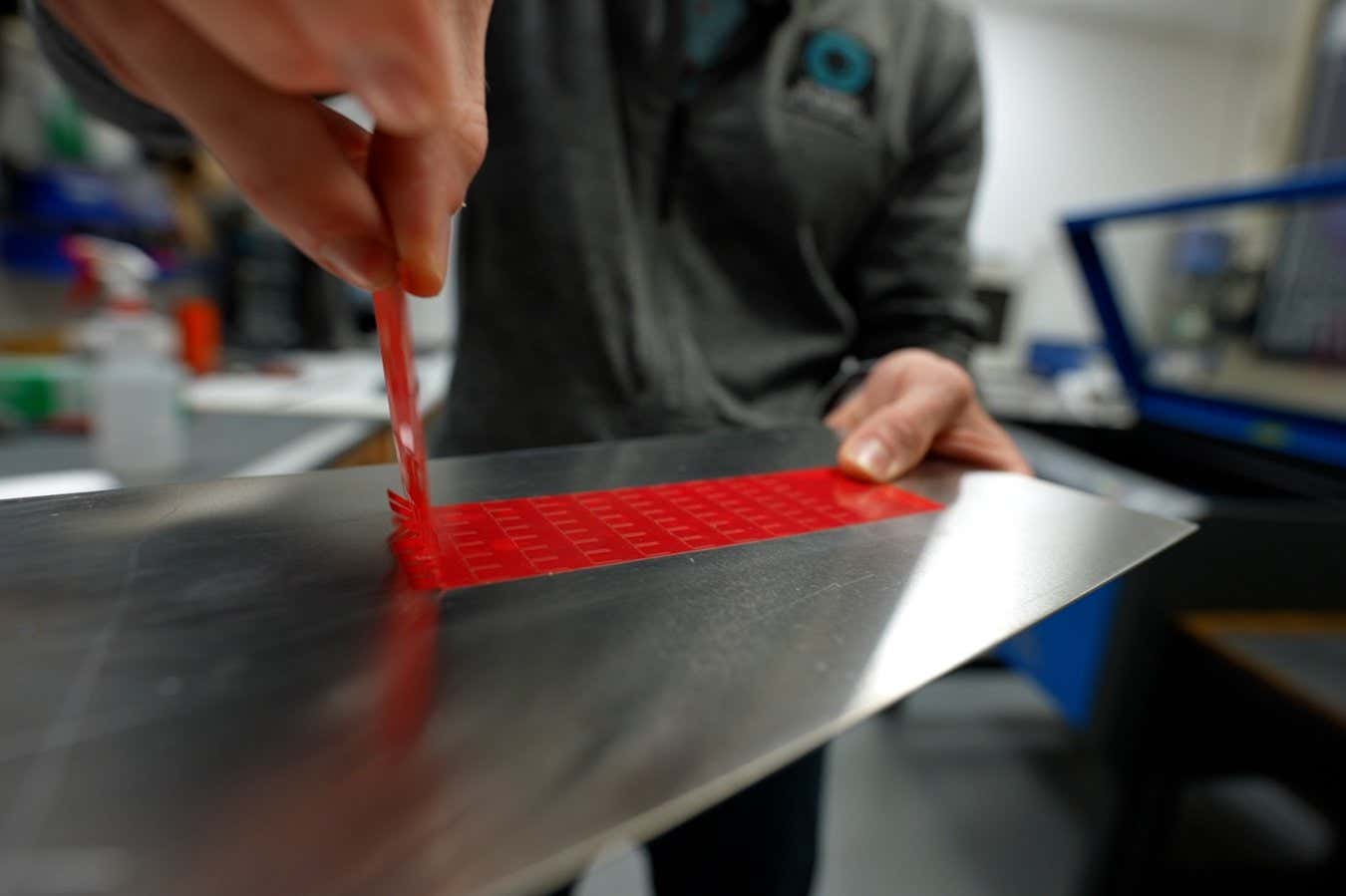 To create the tape, the team laser-cut three sides of a rectangle in a repeated pattern in a strip of sticky tape, to create flaps (see photo). If you peel it off a surface so you encounter the uncut side of the rectangle first, it is easy to separate.