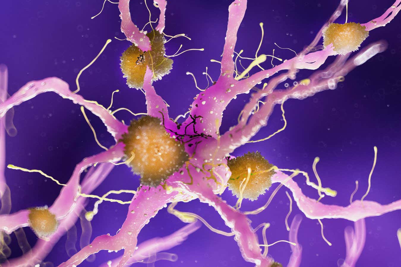 An illustration of amyloid plaques on a nerve cell Sebastian Kaulitzki / Alamy