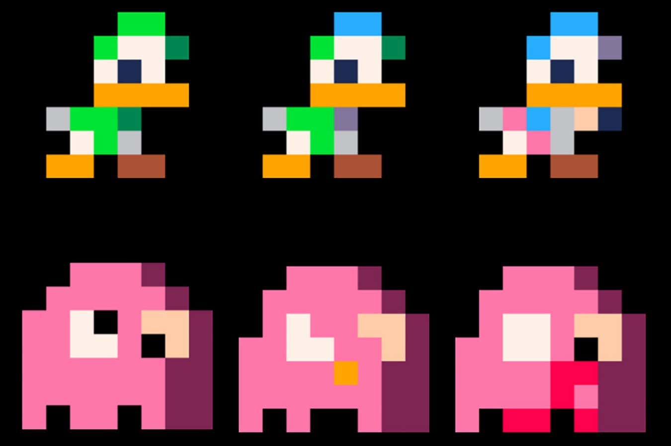 “Duck” and “ghost” character sprites generated by an AI Tim Merino et al