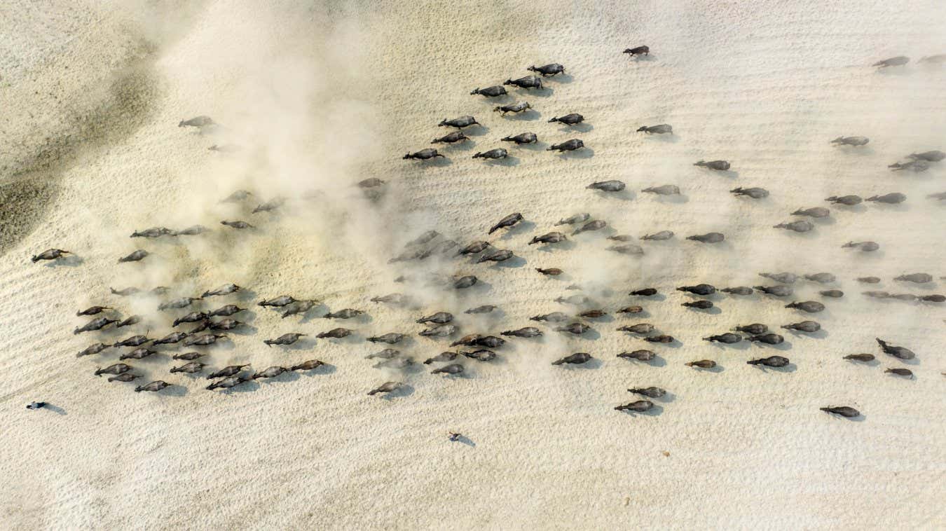 Among the shortlisted photos was Mostafijur Nasim‘s aerial shot of a herd of buffalo walking through a sandy field in Bogura district, Bangladesh, a country facing some of the worst impacts of climate change. Many people who once made a living from buffalo herding have switched to other professions because increasing salinity has meant there isn’t enough drinking water to sustain large herds.