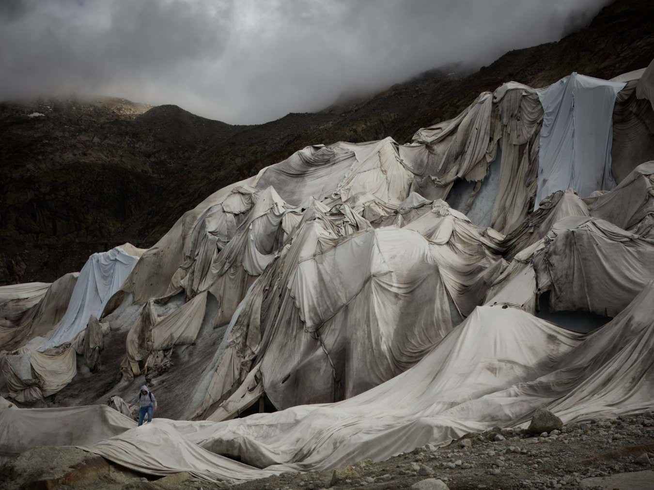 Each spring, residents of nearby villages drape huge blankets over the Rhône glacier in the Swiss Alps. The glacier, which is the primary source of the Rhône river, has lost 40 per cent of its volume in the past century. By shielding the ice from ultraviolet radiation, the blankets reduce melting by around 50 per cent, but they can’t stop the glacier’s retreat. Almost all glaciers in the Alps will disappear by the end of the century if emissions continue at the current rate, according to a 2019 study.