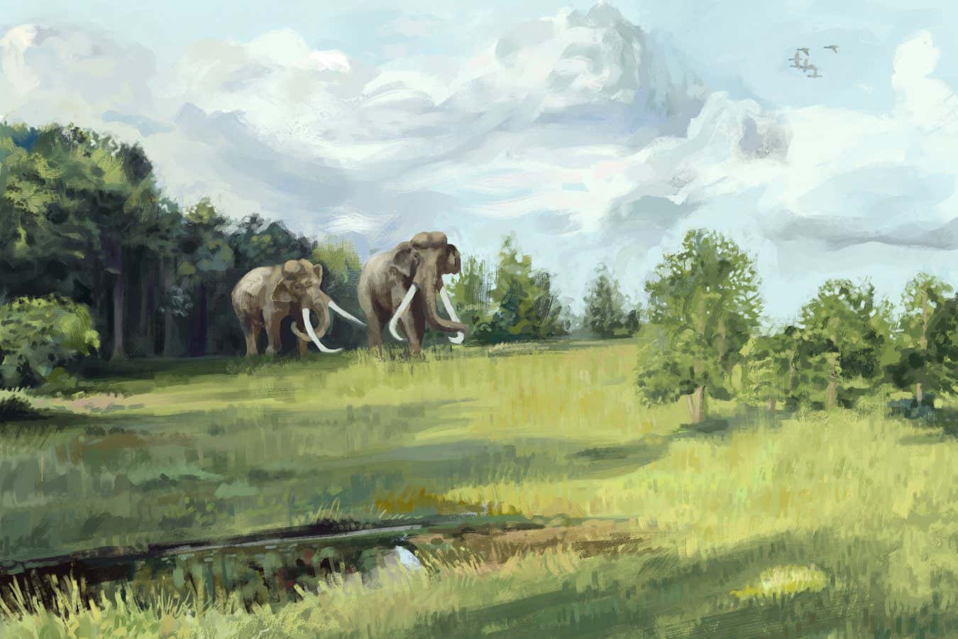 This is probably due to megafauna including straight-tusked elephants and rhinoceros, she says, since they suppress woody vegetation by eating and trampling young trees.