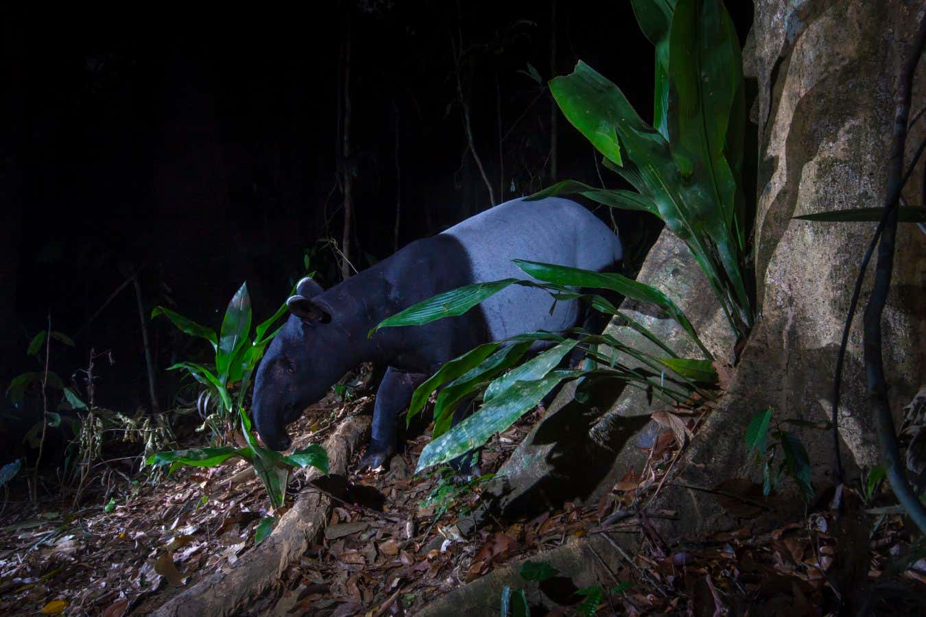 The team also caught images of other wildlife, including this nighttime shot of a Malayan tapir (Tapirus indicus), another endangered species according to the International Union for Conservation of Nature.