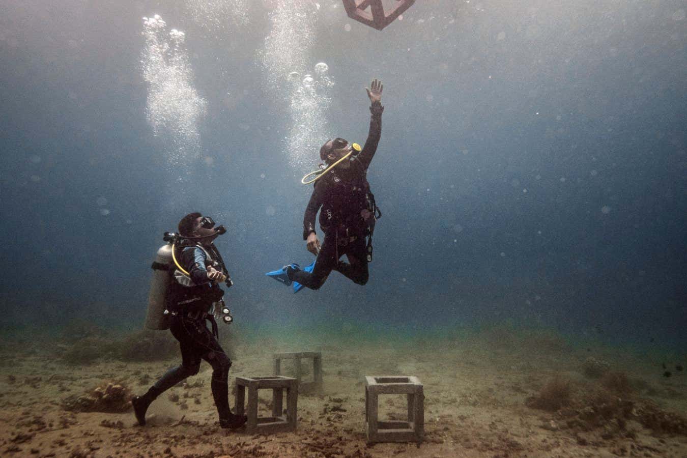 A pair of divers in Bali, Indonesia, are installing concrete blocks at a coral restoration site in this shot by Giacomo d’Orlando. These are meant to act as an artificial nursery for new coral to grow, in an effort to reverse damage to the marine ecosystem caused by unsustainable fishing practices.