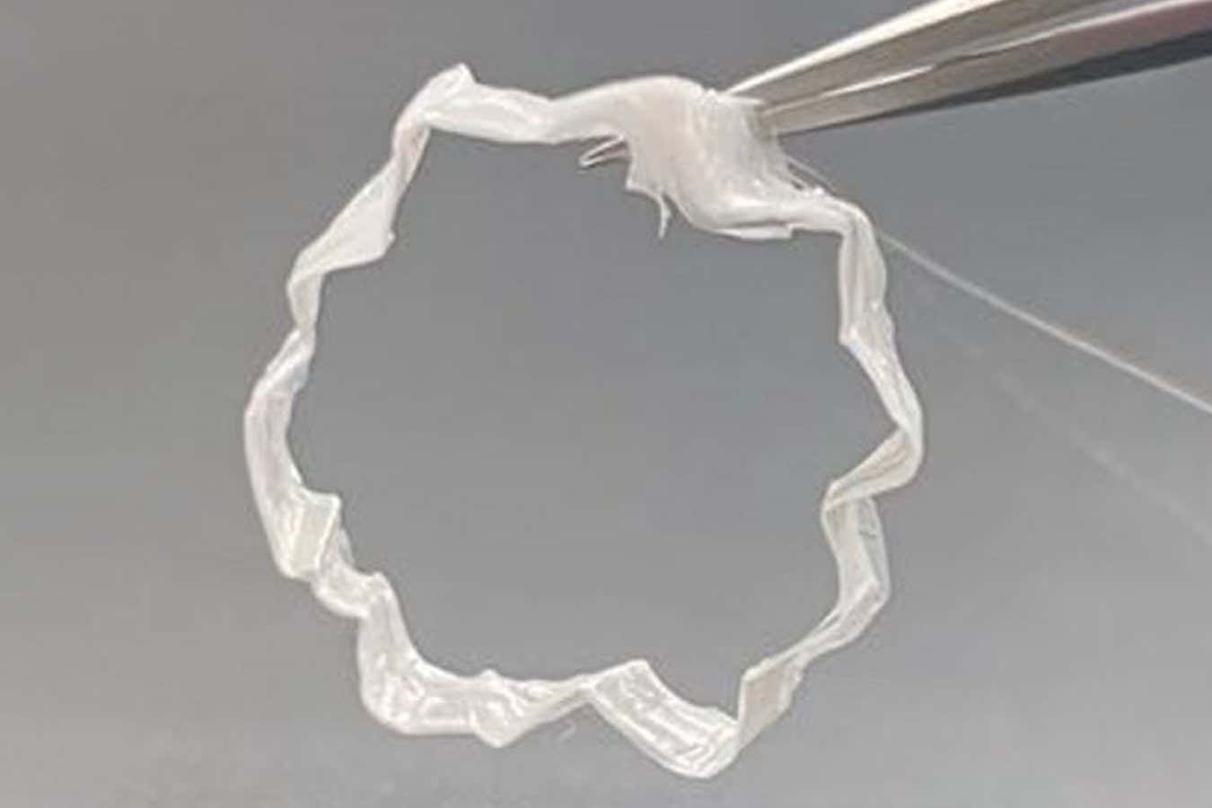 Across several experiments, when the researchers added water to WRAP, it become softer and stretchier, contracting up to 65 per cent in length. For example, a dry loop of the material with a diameter of 17 centimetres shrank to 8 millimetres in diameter.