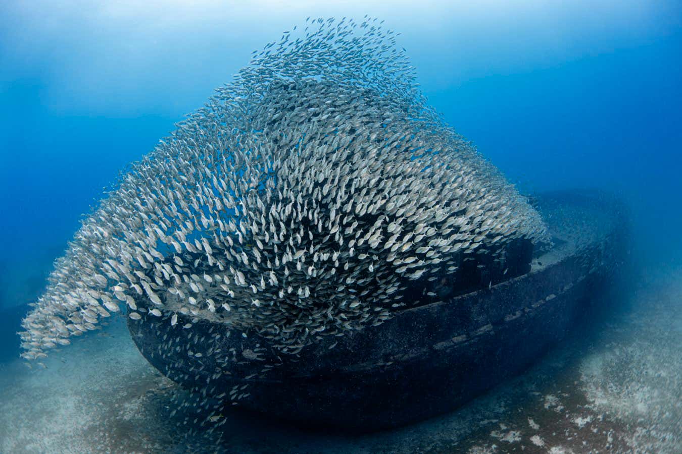 In this photo by Fabiana Fregonesi, a school of fish swarm around a wreck, forming a shape resembling a boat’s sail for a fleeting moment. The vessel, called Virgo, was deliberately sunk in 2017 to become a dive site near Recife, Brazil.