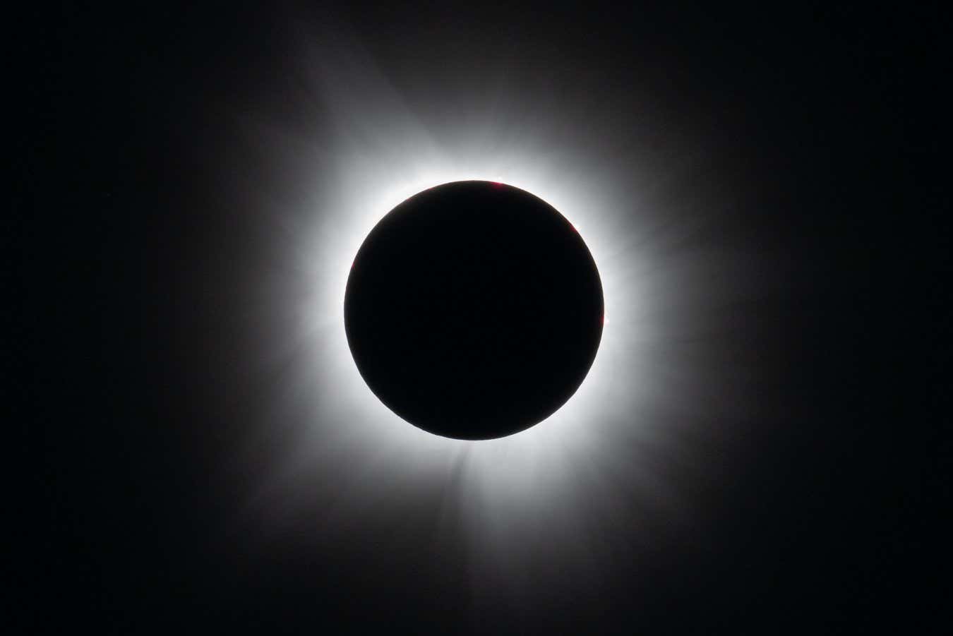 For scientists, the main importance of a total solar eclipse is that it provides a unique opportunity to view the sun’s diaphanous outer layer, the corona. When the disc of the sun is not blocked, it far outshines the corona, so an eclipse is the perfect time to study this mysterious sheet of plasma, shown here during totality in Dallas, Texas.
