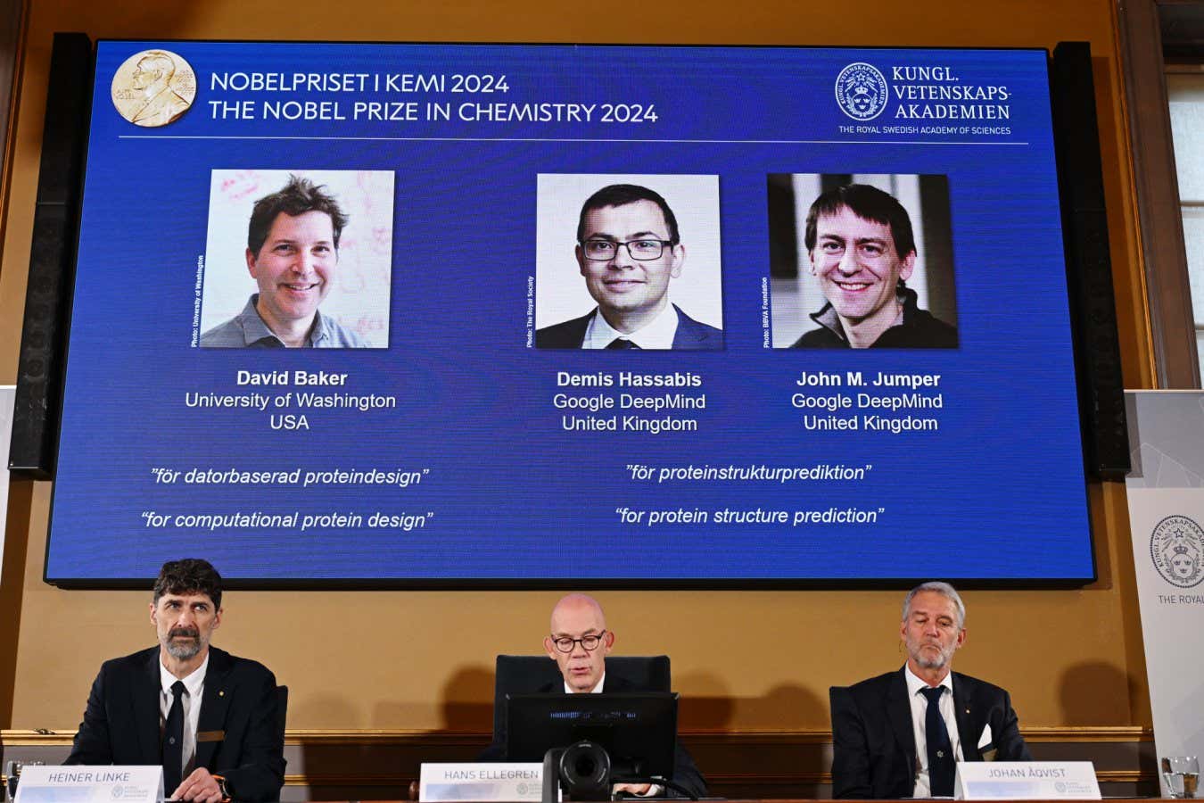 The 2024 Nobel prize in chemistry has been awarded to David Baker, Demis Hassabis and John Jumper for their work on understanding the structure of proteins, which play vital roles in all living organisms. Hassabis and Jumper, of Google DeepMind, developed an artificial intelligence that predicts the structure of proteins. Baker, at the University of Washington in Seattle, has been recognised for his work on designing new proteins.