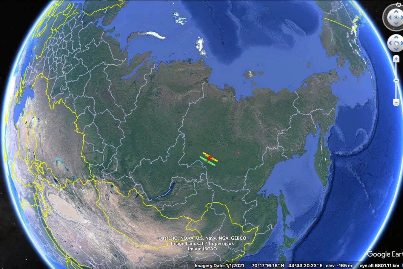 Map showing the predicted location where the asteroid would hit the atmosphere in Siberia ESA
