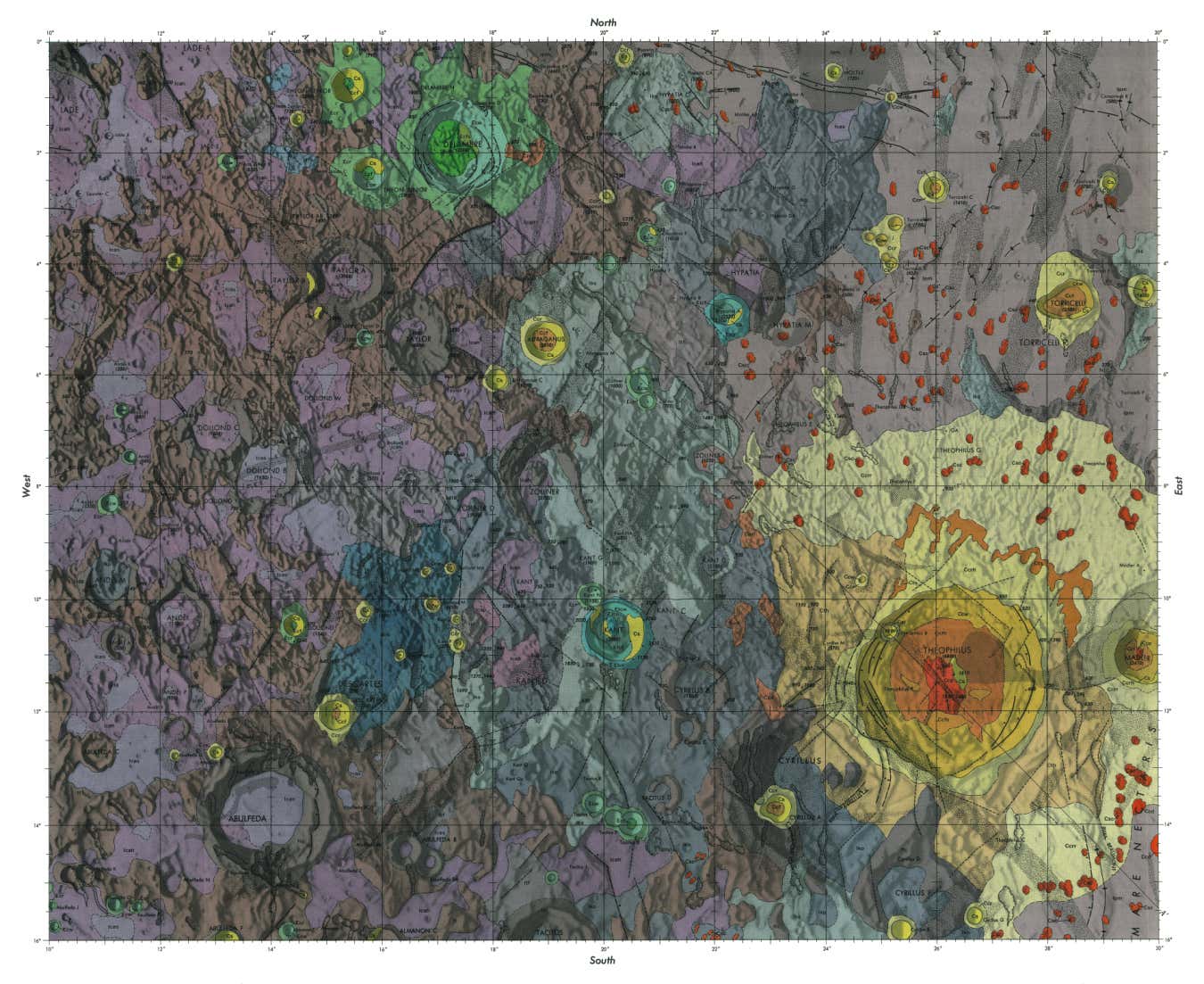 The quadrangle named after the ancient Roman emperor Theophilus is dotted with many smaller craters – a testament to how much of the moon’s geologic history has been marked by asteroid bombardments. As noted in Lunar, the surface of the moon preserves “the history of violence in our solar system”, which marked the system’s early days. Such history is not evident on Earth where water and life keep reshaping the planet’s surface.