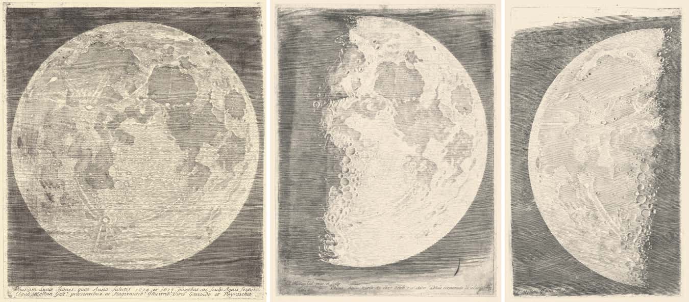 Three depictions of the Moon by Claude Mellan (1637) are thought to be the earliest detailed and realistic depictions of the lunar surface The Metropolitan Museum of Art, New York