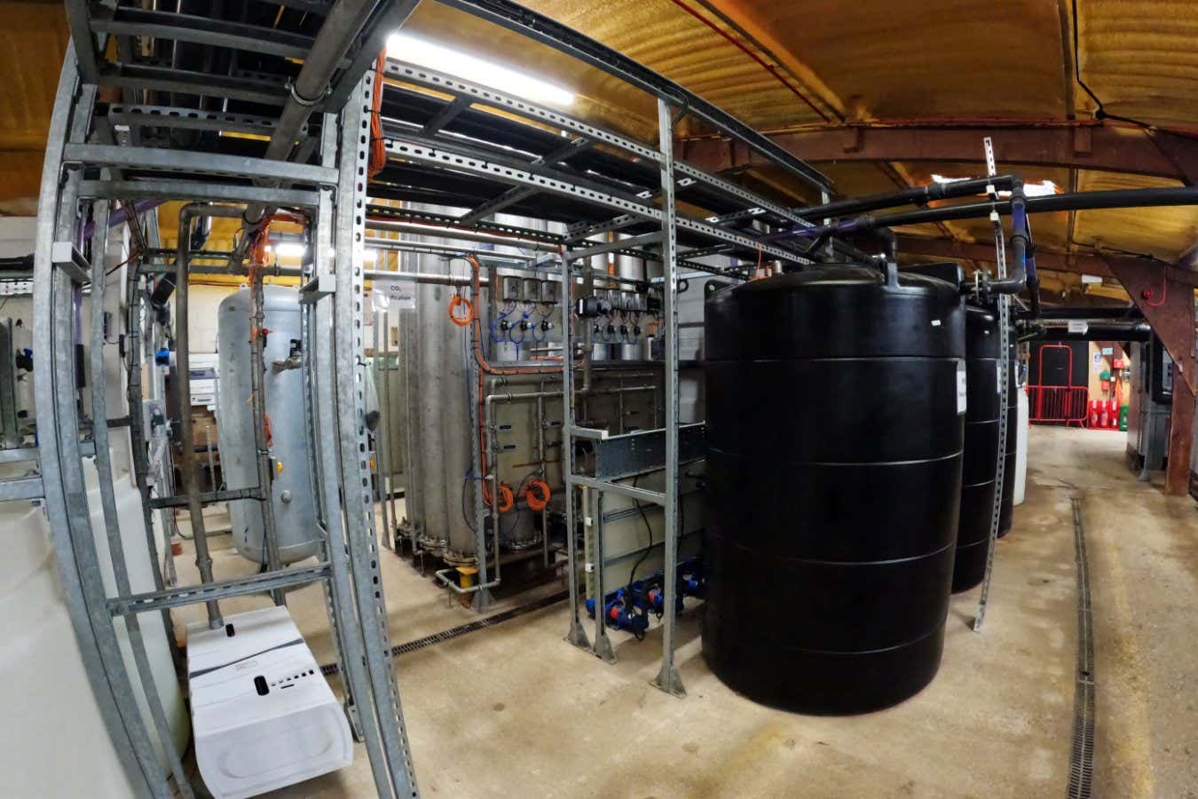 The acidic water will be added to the main seawater stream until the pH reaches 4, similar in strength to tomato juice. This will cascade through tiny plastic rings in the stainless steel tank, releasing CO2 as it comes into contact with air. Then the alkaline stream will be added back in, raising the pH of the water before it is piped into the sea to absorb more atmospheric CO2.