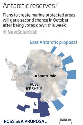 The commission meeting voted on a proposal from the US and New Zealand to create a protected area covering 1.6 million square kilometres in and around the Ross Sea (see map). There was also a second proposal from the European Union, Australia and France to protect the coastal waters around East Antarctica. If either proposal had passed, it would have created the world’s largest marine protected area.