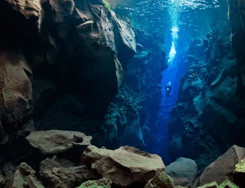 The crack is actually the tectonic boundary between the Eurasian and the North American plates under the surface of Thingvellir Lake in Iceland. It’s a stunning illustration of how the movement of magma in the Earth’s mantle pushes continental plates around on the surface – the subject of the paper by Drummond Matthews and his PhD student Frederick Vine, both of the University of Cambridge.