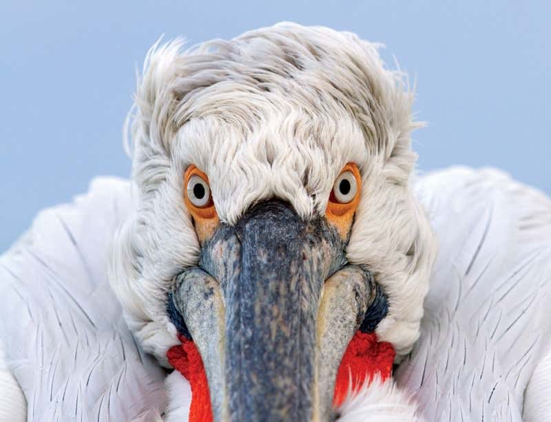 This formidable creature is the largest living animal able to fly. The average weight of a Dalmatian pelican (Pelecanus crispus) is 11.5 kilograms, and its wingspan reaches an albatross-beating 3.5 metres. That sort of bulk requires a lot of fuel, and the bird eats 1.2 kg of fish per day. It can also store fish in its cavernous pouch, which turns bright red in the breeding season.