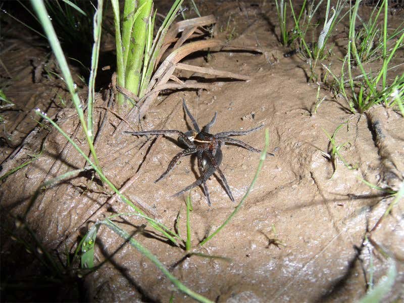 Other reports came from wetlands in the UK, where the great raft spider (Dolomedes plantarius) sometimes catches small fish like sticklebacks, in swamps in South America and garden ponds in Australia. The largest fish the spider caught was a goldfish 9 centimetres long, from a pond in Sydney.