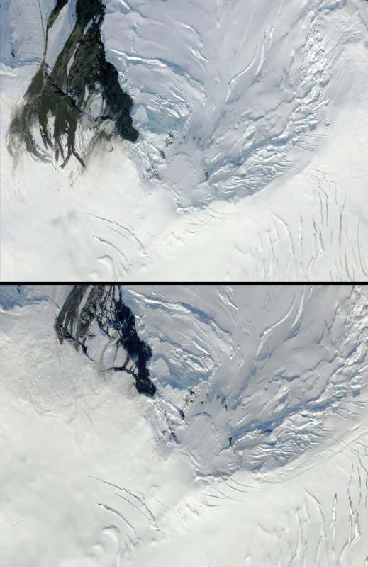 When they found out an earthquake had shaken up the glacier and realised they had been flying just 2 kilometres from the quake’s epicentre, they checked their most recent pictures of the area. “We were pleasantly surprised when we were able to use the imagery to make a wicked cool observation of quake-induced change,” says NASA glaciologist Kelly Brunt, who took the images.