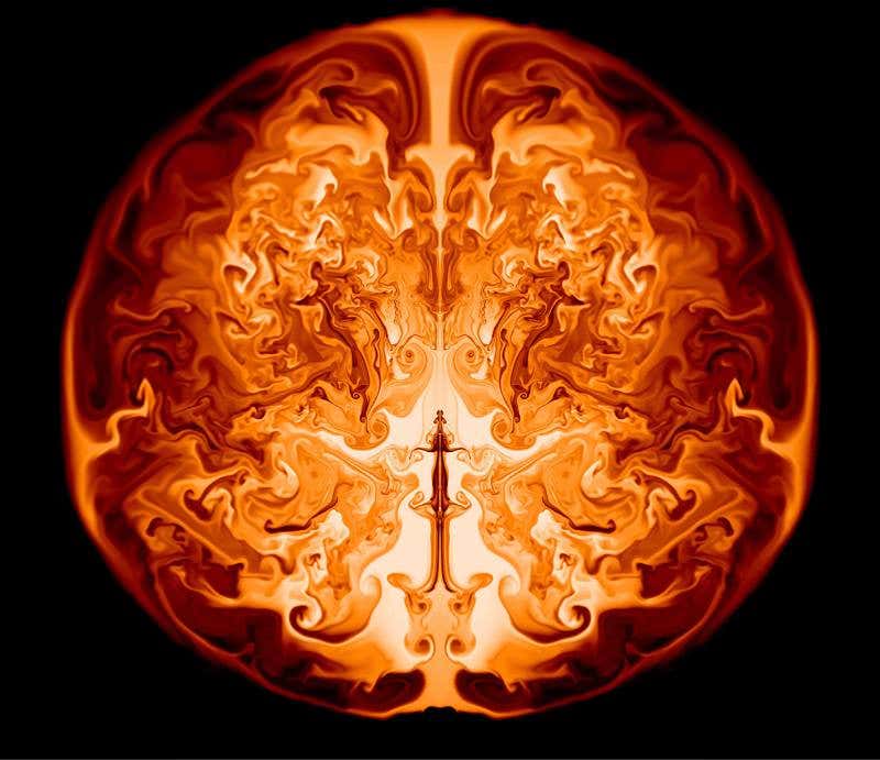 If this was a scan of your brain, you’d have one fiery headache. It’s actually a slice of a simulated primordial star, giving us a peek at what might have happened as it died.