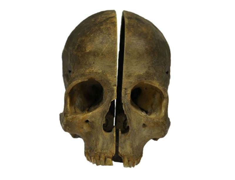 Want to see a splitting headache? This skull, fortunately sliced in half after death, features a rare vertical cut performed during a dissection at the end of the 1800s.