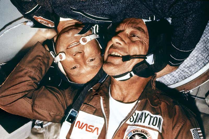 US astronaut Deke Slayton and Soviet cosmonaut Alexey Leonov frolicking during the US-Soviet Apollo-Soyuz link-up, July 1975 NASA/The Life Picture Collection/Getty