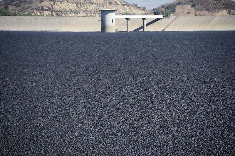 On Monday, the utility company released 20,000 of these balls – each about the size of a grapefruit – into a reservoir in Sylmar, California. It was the final release required to cover the surface of the 12-billion-litre reservoir.