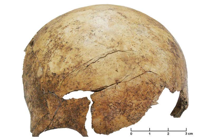 A Stone-Age child’s skull, showing the death blow to the forehead region, possibly made using an adze (Image: Christian Meyer)
