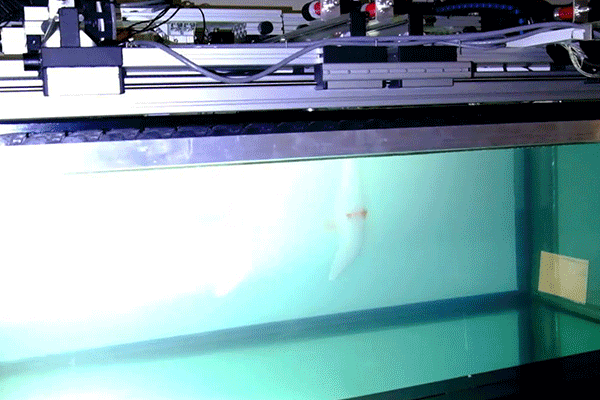 Next, Muscutt will be testing 3D flippers using a robotic model, shown below. He suspects plesiosaurs varied their swimming style depending on the conditions, using different flipper movements to swim at different speeds. In the future, he would like to build a full, free-moving replica to see how their long neck affected their swimming.