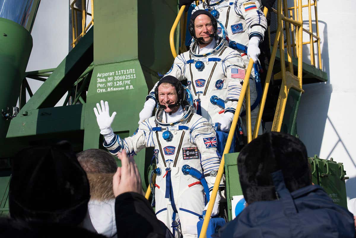 The Soyuz craft is following the “fast route” to the ISS, in which the rocket launches at just the right time to catch the orbiting space station as it flies overhead. Should anything delay the launch, Peake and his fellow astronauts will have to spend two days on board the cramped Soyuz while they catch up.