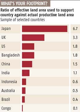 Their rationale is that large countries have more natural vegetation to absorb pollution, and more fields and forests to provide natural resources for the world. So they should be entitled to a larger ecological footprint than small, densely populated countries. That would be good news for the US, Australia, Canada, Russia and Brazil, but not so good for Japan, most European countries, China and India.
