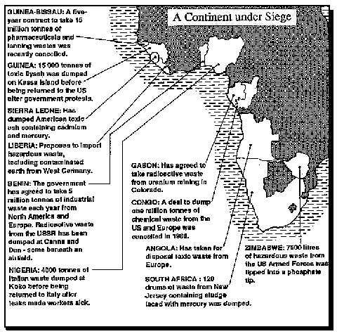 Last year, the Nigerian port of Koko hit the headlines when a consignment of 4000 tonnes of Italian chemical waste, containing toxic polychlorinated bi-phenyls was stored near the port in leaking drums. Another 11,000 tonnes of solvents from Italy was dumped illegally in Venezuela. Both consignments were eventually returned to Italy.