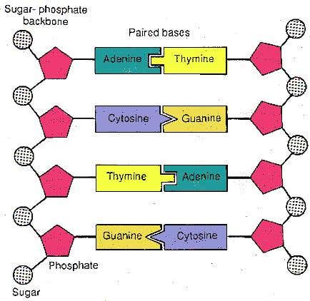 The strands bind together by ‘base pairing’, the remarkable system first described by James Watson and Francis Crick. Between two strands of DNA the base adenine always binds to the base thymine, and guanine always binds to cytosine. So if you have one strand you can deduce the order of bases on the other, and these strands are said to be complementary to one another. This ‘base pairing’ can also bind together complementary strands of DNA and a related chemical, RNA, or two strands of RNA. A cell normally decodes the information on the sense strand by copying it onto single strands of RNA. This ‘messenger’ RNA (or mRNA) then carries that information to the ribosomes, where proteins are made from amino acids…