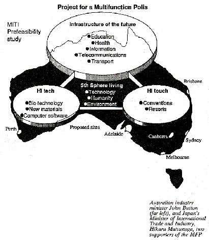 AUSTRALIA and Japan want to build a high-technology city of a quarter of a million inhabitants, and the plans have stirred up a public debate in Australia where the city will be sited. Known as the Multifunction Polis, and originally the brainchild of Japan’s Ministry of International Trade and Industry (MITI), the city will include, among other things, a bioscience research institute, a global resources monitoring service, and a new World University.