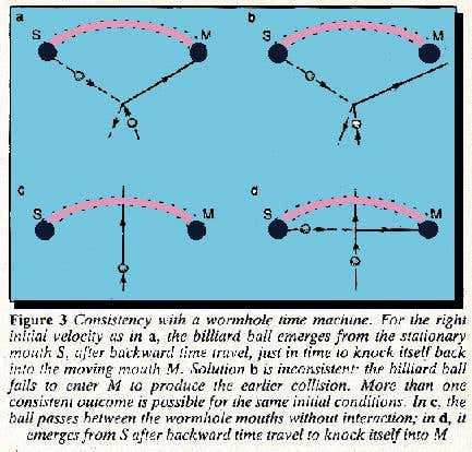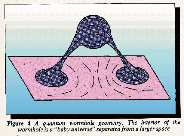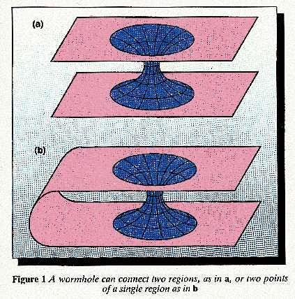 Neither type of wormhole is a new idea. Theorists have known about large-scale wormholes for more than 70 years – since shortly after Albert Einstein put forward the general theory of relativity, which relates gravity to the geometry of space and time. For 30 years, physicists have conjectured that microscopic wormholes might play a crucial role in understanding the structure of elementary particles or in developing a quantum theory of gravity. Recently, however, researchers have found that both types of objects may have some remarkable, previously unsuspected properties. Large-scale wormholes could provide a relatively easy means of travelling backwards in time, with all the potential complications that entails. Microscopic wormholes might, through their contribution to the quantum mechanics of the Universe, deter mine the values of all the constants in all the laws of physics. Much of this wormhole work is speculative and some very controversial, but that is why these subjects have generated such excitement lately.