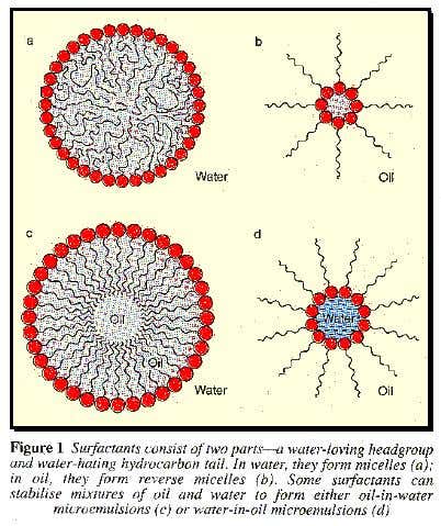 Recently, some researchers have started to use specially tailored solvents – so-called ‘functional fluids’ – to carry out their reactions. This is developing into an important and exciting area of chemistry and there is now available a range of novel media for reactions. One particular kind of functional fluid, known as a microemulsion, shows great potential. Microemulsions contain an organic solvent (for example, a hydrocarbon oil such as octane), water and a dispersing agent, which are organised in a structured way. Microemulsions provide a highly flexible and unique medium for carrying out chemical reactions.