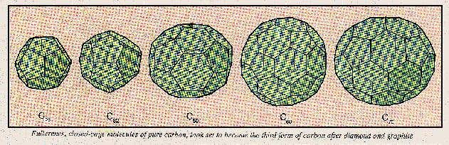Diamonds may once have been a girl’s best friend, but chemists know they are only lumps of graphite in disguise. Both are forms of pure carbon although they have different properties. During the past five years, chemists have amassed overwhelming evidence for a third form, known collectively as fullerenes, based on closed cages of carbon atoms. The discovery of these molecules has opened up a new field of carbon chemistry – and the race to discover them was almost as intriguing as the molecules themselves.