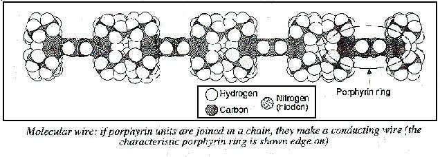 four so-called porphyrin units to make a conducting strand, 6.5 nanometres