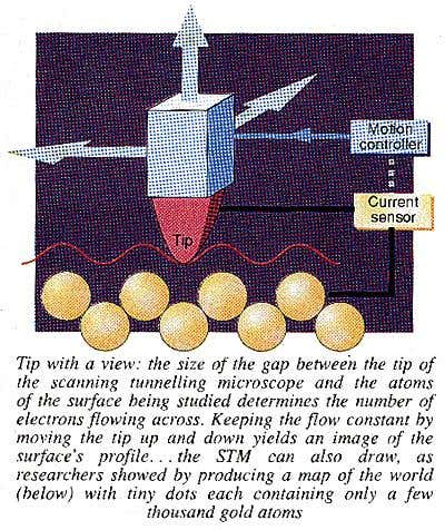 What has happened is that scientists have started indulging in microscopic graffiti. The instrument that makes this possible is the scanning tunnelling microscope – invented 11 years ago to produce images of surfaces showing the arrangement of individual atoms. In the past few years scientists have been using the extremely fine tip of the microscope to modify surfaces as well. The temptation to leave their mark in messages only a few atoms high is irresistible.