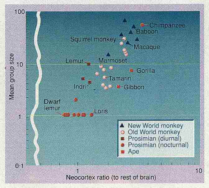 So why do primates have such big brains? There are two general kinds of theories. The more conventional one is that they need big brains to help them to find their way about the world and solve problems in their daily search for food. The alternative type of theory is that the complex social world in which primates live has provided the impetus for the evolution of large brains. The main version of the social intelligence theory, sometimes known as the Machiavellian intelligence hypothesis, has the merit of identifying the thing that sets primates apart from all other animals – the complexity of their social relationships.