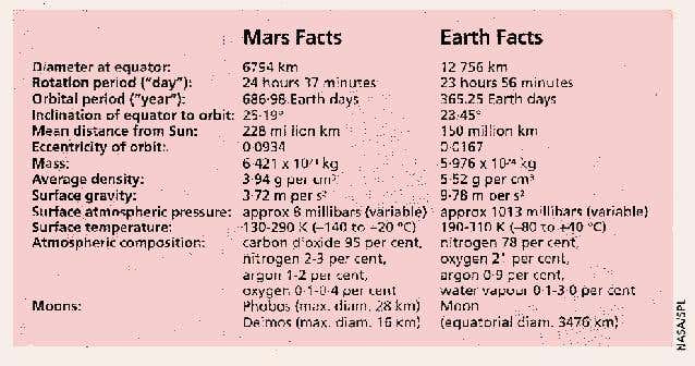By mid-November all should be ready to turn on the scientific experiments. The spacecraft will circle Mars once every 118 minutes in an orbit inclined at 93 degrees to the equator and 378 kilometres above the surface – low enough to get detailed pictures but high enough to avoid atmospheric drag. As Mars spins beneath the orbiting craft, the whole of its surface will be surveyed during each Martian day, lasting 24 hours 37 minutes.