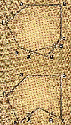In space syntax analysis, the regions between buildings in a settlement are represented using two complementary descriptions, a convexity map and an axial map. The convexity map shows the space on a plan of the settlement as a system of ‘convex’ segments, in which a person standing at any point on the perimeter of a segment can see another person standing at any other point on its perimeter. If a segment has a blind spot, it is described as ‘concave’ and must be subdivided until it is represented by only convex segments. Overall, the space must be represented by the smallest number of the biggest convex segments possible. The settlement’s axial map derives from its convexity map and shows the smallest number of the longest possible straight lines that are needed to ensure that every possible link between the convex spaces is captured.