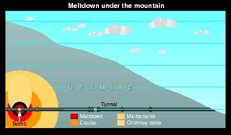 The bomb destroyed last week with 400 kilograms of chemical explosives was originally brought to the Semipalatinsk testing site, known as the Polygon, in 1991 by the former Soviet government. According to Vladimir Iakimets from the Russian Academy of Sciences in Moscow, it was placed 126 metres underground in a tunnel bored into the granite rocks of the Degelen mountains in the southern part of the site. The tunnel, known as “Number 108”, was then sealed with four large concrete plugs.