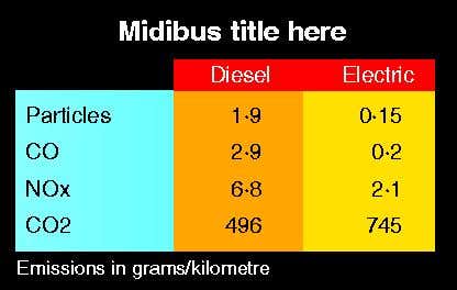 The tally of pollution depended in part on how the electricity was produced. In general, assuming that the current mix of coal, gas and nuclear power stations stays the same, electric midibuses produced less of the most common traffic pollutants than diesel buses (see Diagram).
